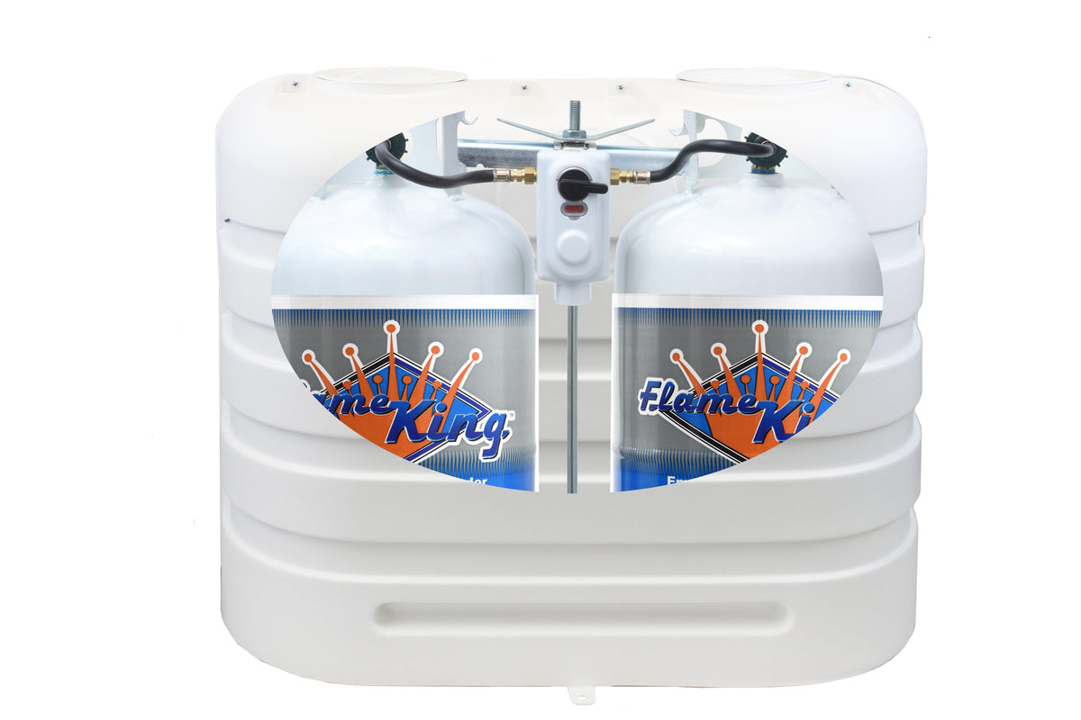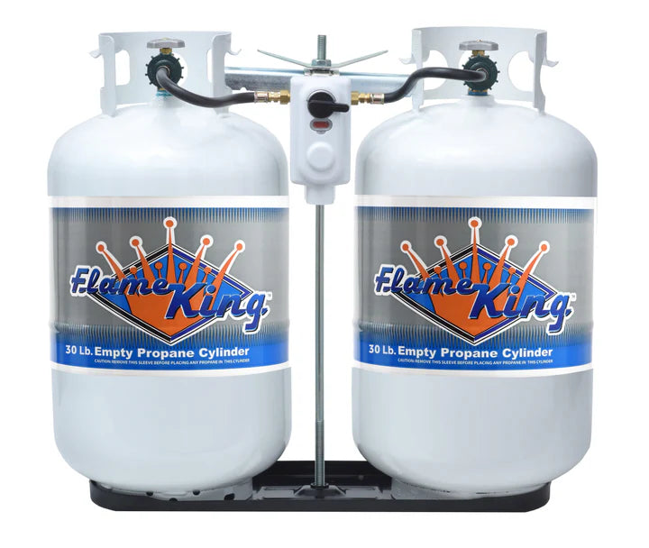 Shop the bundle with 30lb Mounting Parts, a 2-Stage Auto Propane Regulator, and two 30lb propane tanks with a heavy-duty cover at Flame King.